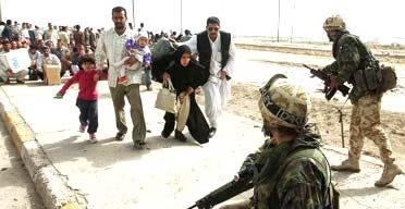 The machine-gun team stayed in place to cover the intersection. Three more Soldiers moved to the overturned car. Seeing muzzles pointed at their faces, the three men inside raised their hands and clumsily poured out the window. Once they were on their feet, the Soldiers began searching them and tying their hands behind their backs.